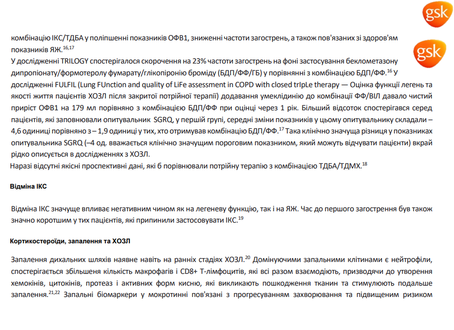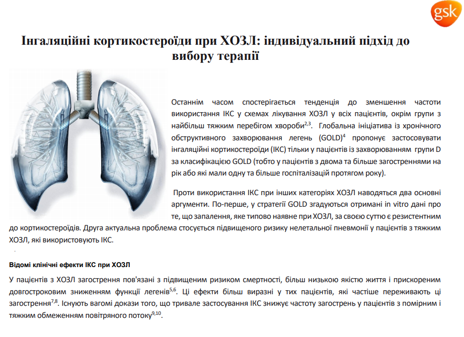 Медичний Дайджест GSK Ukraine – Інгаляційні кортикостероїди при ХОЗЛ: індивідуальний підхід до вибору терапії Дата публікації: 13 Вересня 2019 року. Опубліковано в Реформа МОЗ. « Назад Вперед »